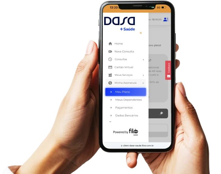 Uma plataforma digital white label, desenvolvida pela Filóo Saúde, que permitirá à sua empresa ofertar um ecossistema completo de soluções em saúde aos clientes, sob sua própria identidade visual.